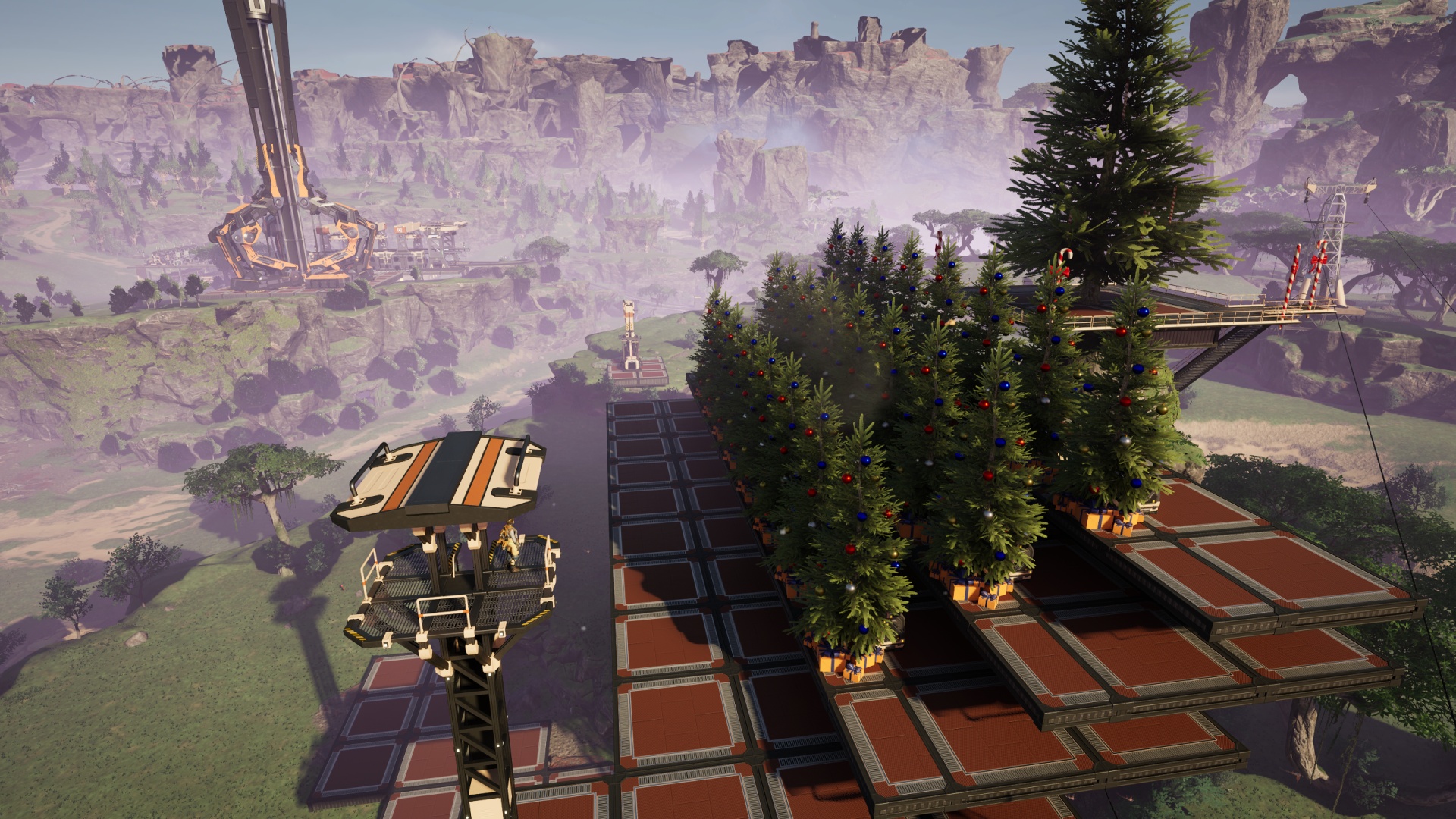 The seasonal event is well-timed as I’m waiting for all the Phase 3 products to get ready to send skyward. I completed work out at the Blue Crater and at this point it’s just a matter of patience, or at least active distraction. Along with the chasing of falling gift boxes, I threw together a recycling plant: