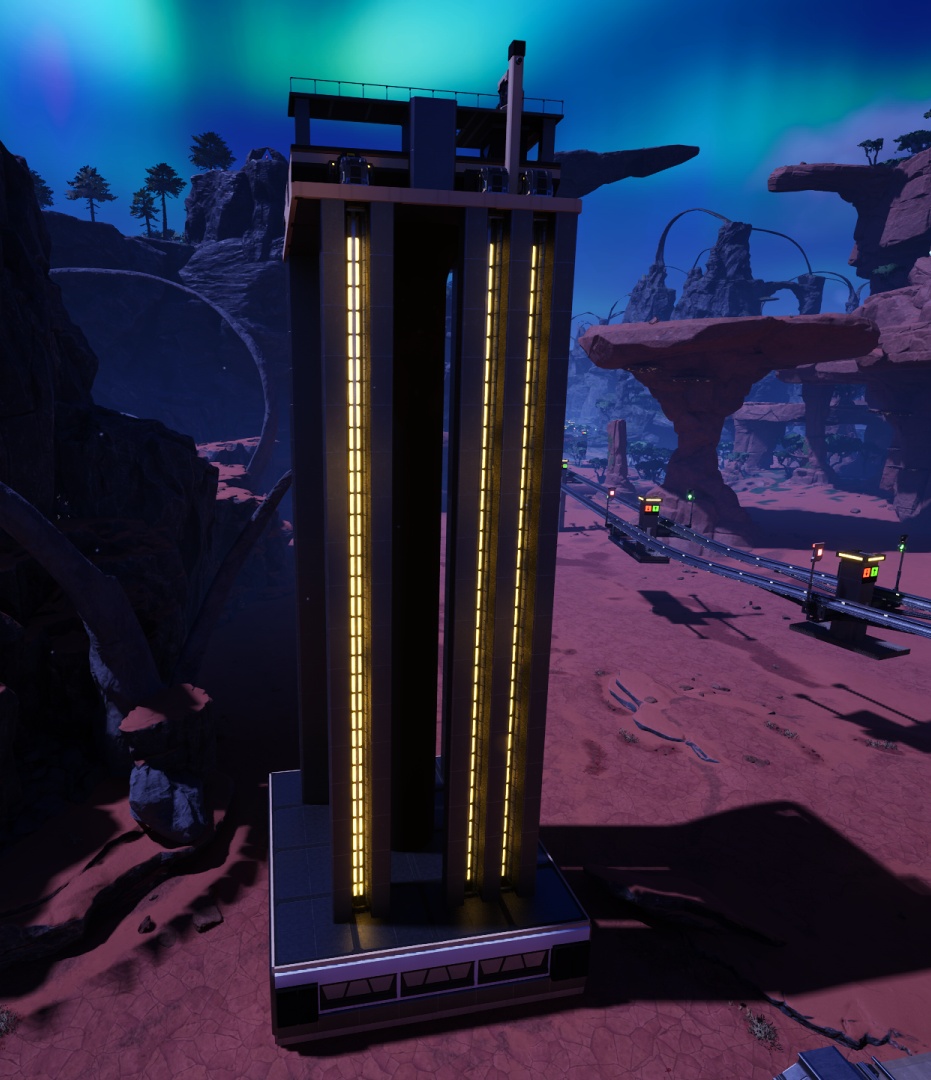 The neat thing is, I can stack this remarkably high and still connect the conveyor lifts. In the current state of the game (version 1.1 as I write this) you can connect two conveyor floor mounts much further apart vertically than you could normally reach just by extending a conveyor lift from its starting point. You just have to… keep extending it until you reach the other floor mount. It won’t look like it’s working past a certain length until it clicks into place at the end.
