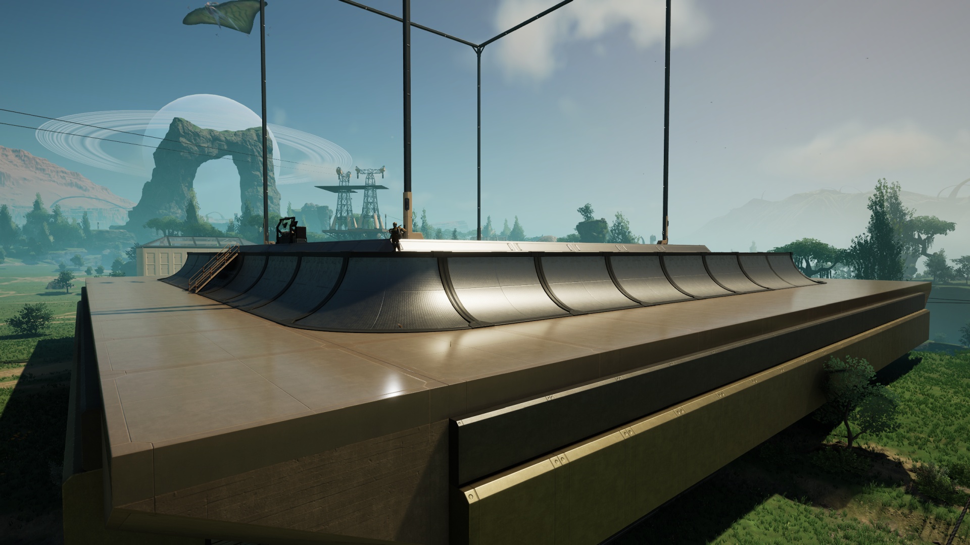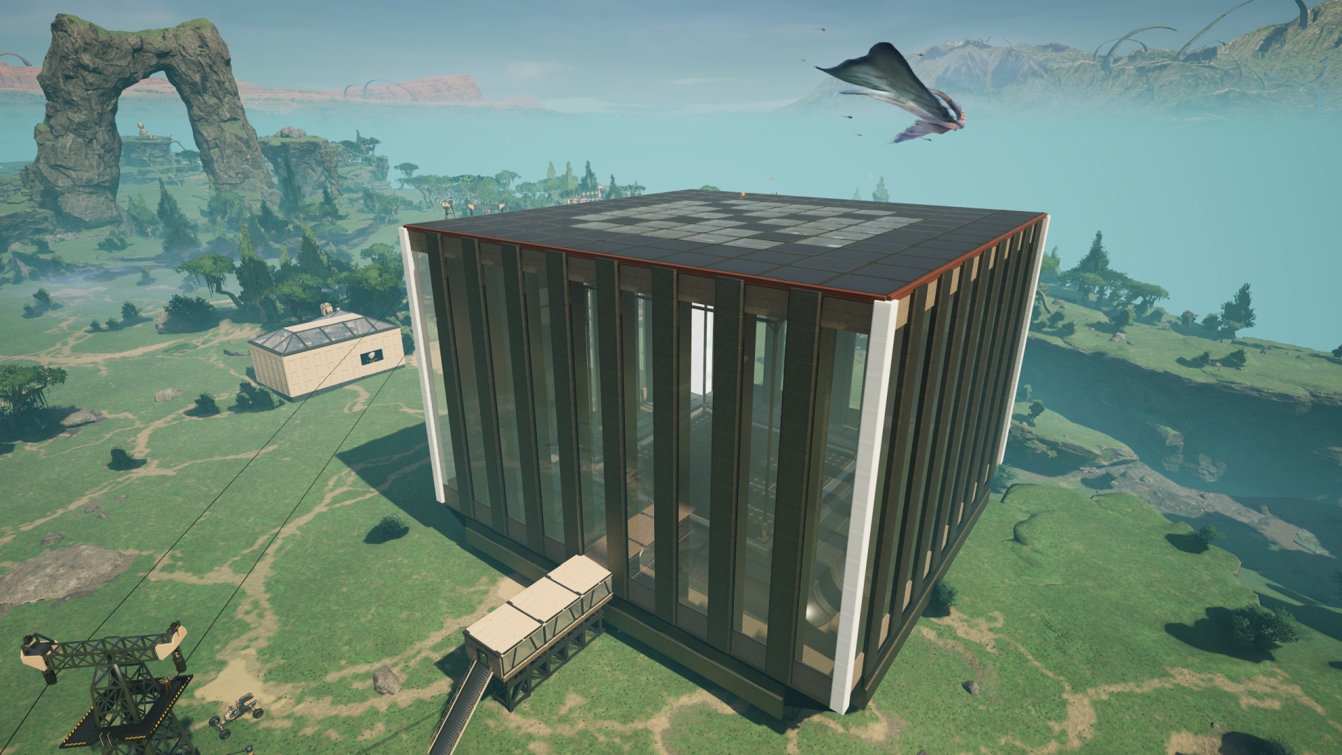 The main reason for creating an actual building around the Blueprint Designer is power. (The secondary reason is the opportunity to build and decorate a big cube of a building, of course.) The device itself needs no electricity, but the Hoverpack (the Pioneer’s best friend when designing tall blueprints) requires available juice within a reasonable range. My answer was to run power under the floor and up along four columns surrounding the Designer itself, close enough to keep the Hoverpack happy but far enough away to avoid any weird interference with the Designer itself. (It’s a finicky beast sometimes.)
