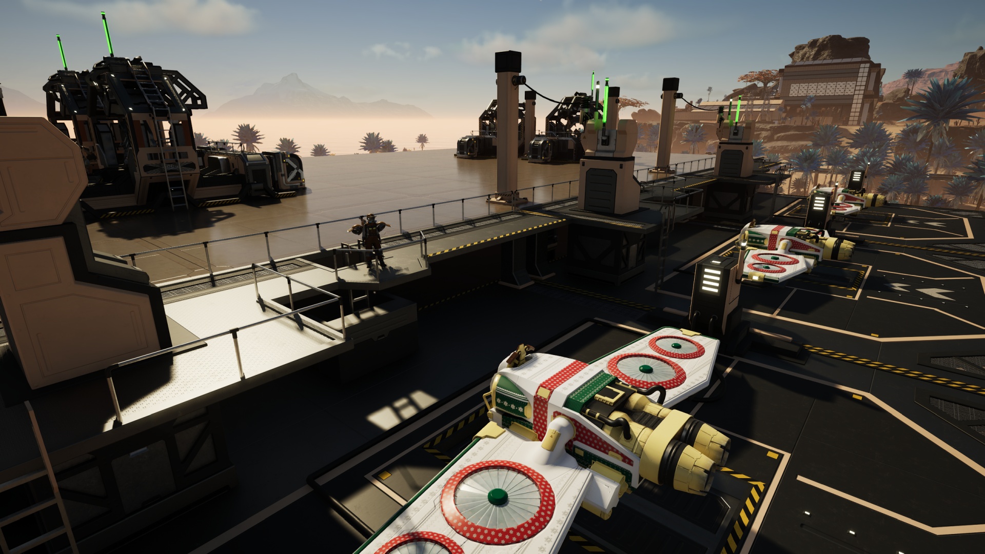 It’s a nice touch that the walkway pieces snap neatly to the walkway decking of the drone ports.